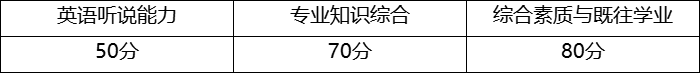 2.综合面试。重点考察考生的思想政治素质和品德考核、专业综合能力、创新潜质和能力、外语能力水平、综合素质评价、心理健康状况等。综合面试一般包括考生自述、考生随机抽题作答、面试小组提问交流、专家评分等环节,考核时长一般不少于20分钟。综合面试满分200分,《面试考核评分细则》见附件3。各部分分值及占比如下: